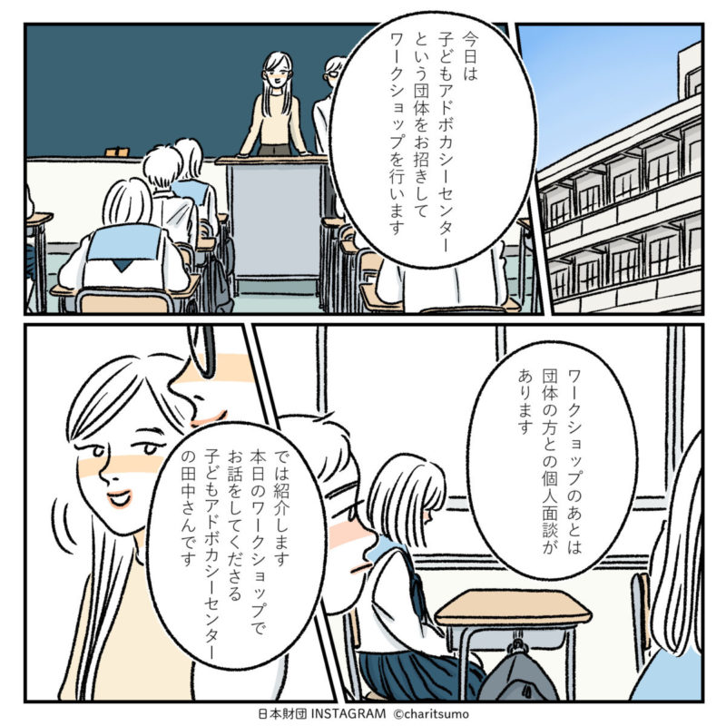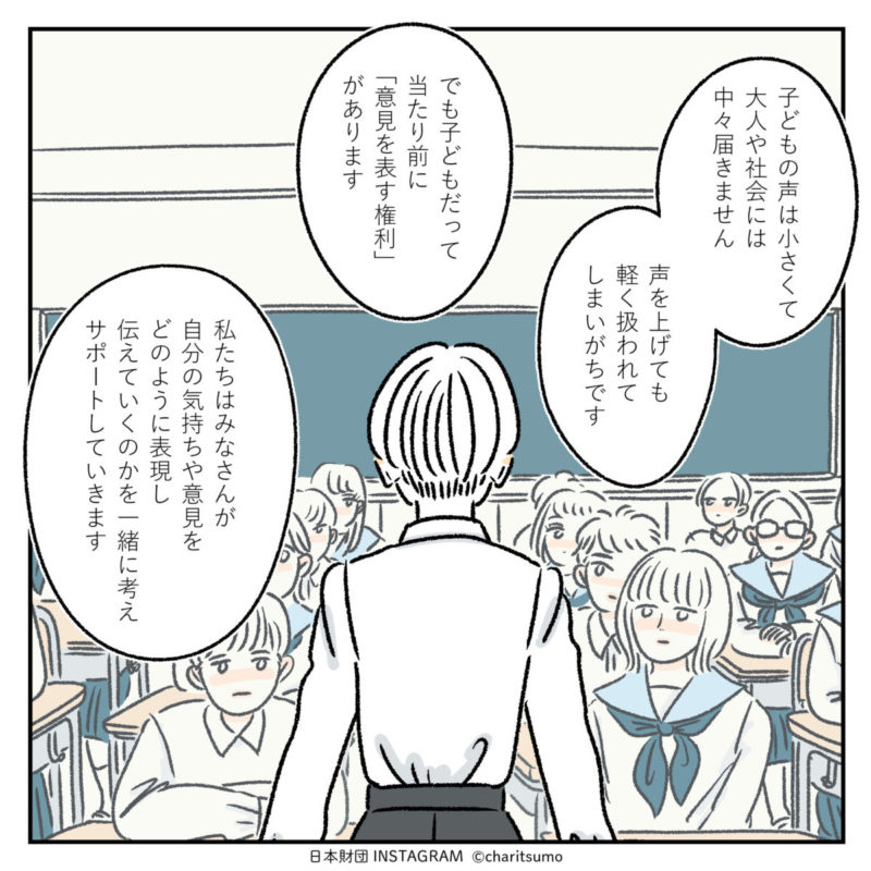 チャリツモが制作を担当させていただいている日本財団インスタグラムでは、こどもまんなかの取り組みを応援するべく、こども支援の活動をマンガでご紹介しています。